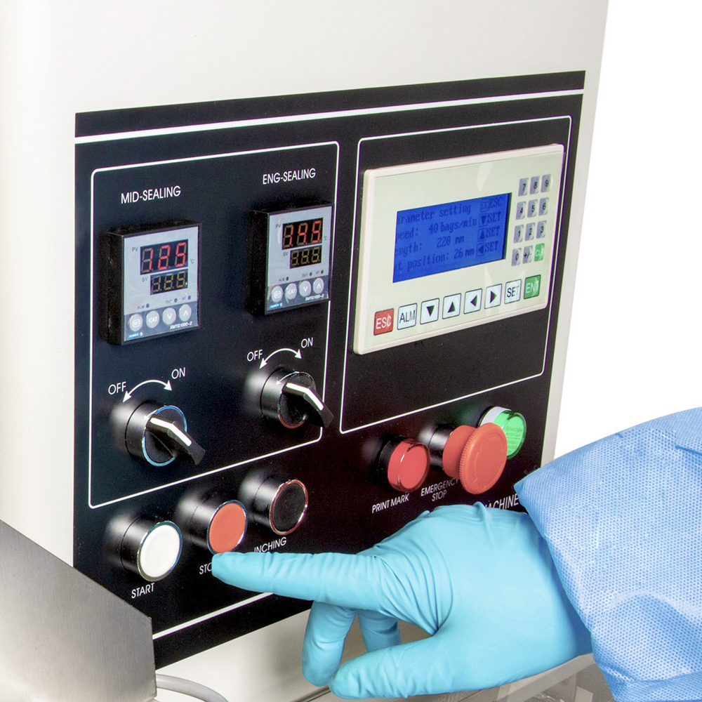 • Automatic detection and adjustment for bag length using packaging film eye marks