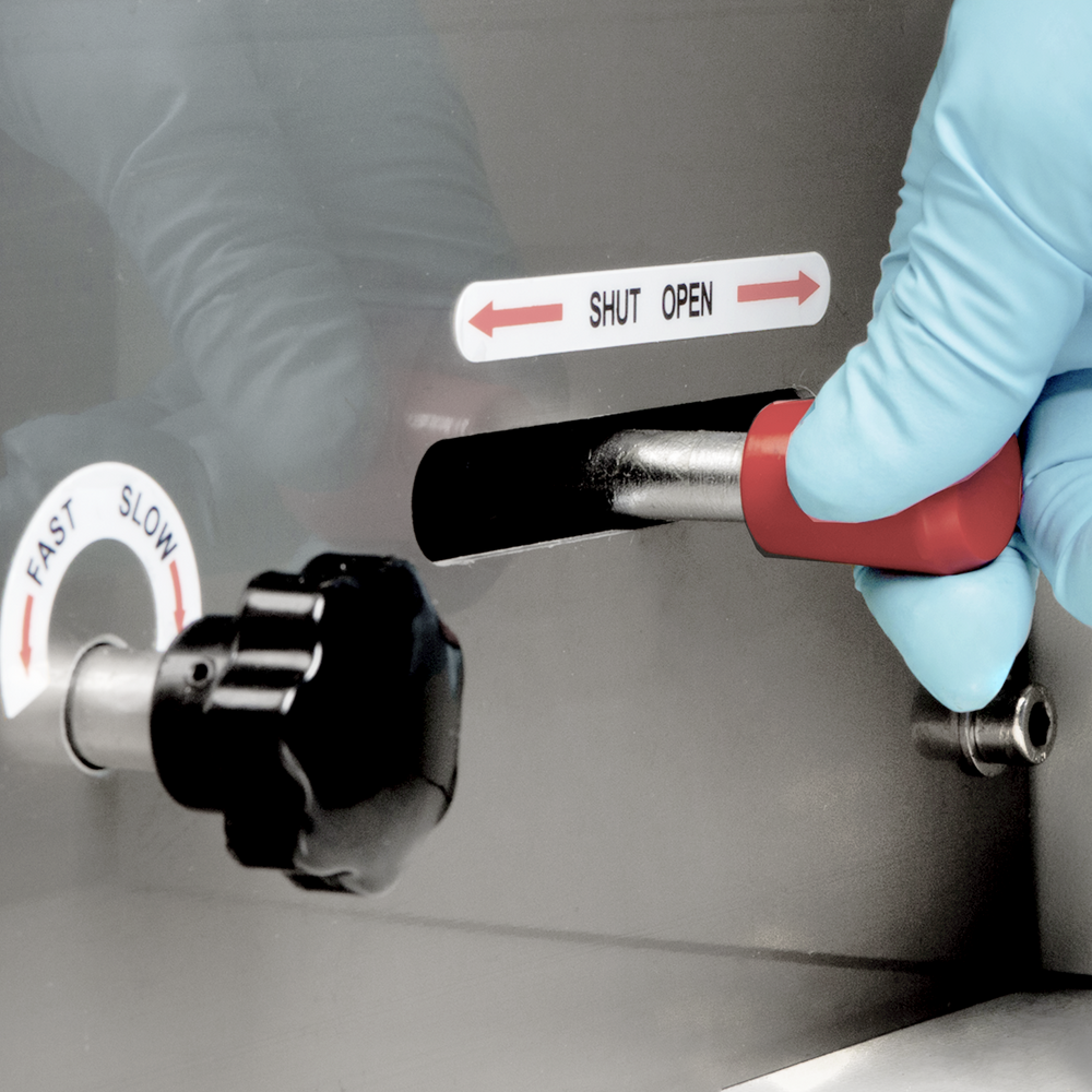• Flat-chain conveyor system promotes sanitation and minimizes contact points