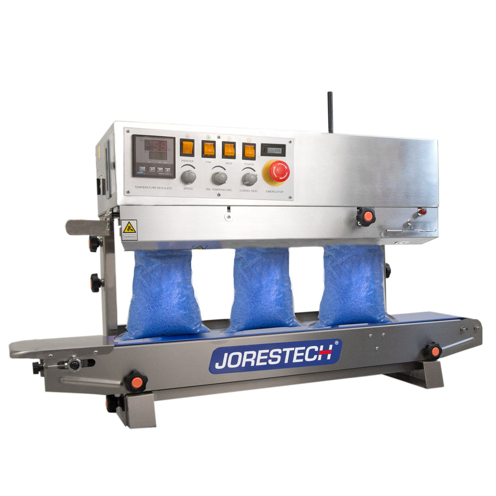 Transform your packaging operation with the Jores Technologies Left to Right Stainless Steel Digital Continuous Band Sealer 800 with Coder—an advanced packaging machine designed to speed up and secure your bag sealing process. Engineered for dependability, this industrial bag sealer streamlines your assembly line by providing a robust, user-friendly solution for sealing a variety of thermoplastic materials. Featuring a sleek stainless steel build and digital controls, it is perfect for businesses aiming for professional-grade results and maximum process efficiency.