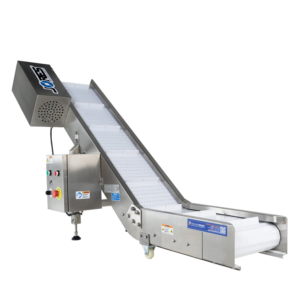 Optimize your processing flow and achieve superior efficiency with the Jores Technologies Motorized Take Away Incline Conveyor—a game-changing addition for any modern packaging facility.